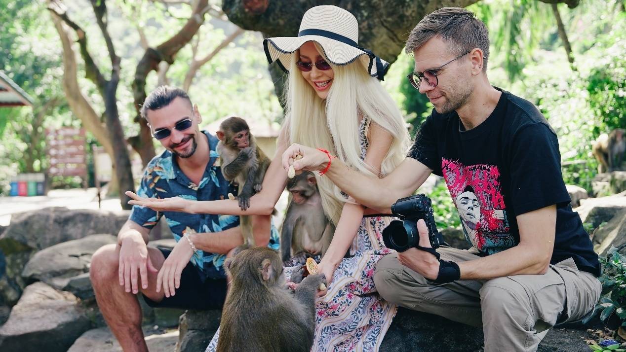 南湾猴岛位于陵水黎族自治县南部的南湾半岛,三面环海,是我国也是世界上的岛屿型猕猴自然保护区。岛上有热带植物近400种,动物近百种;据不完全统计,目前岛上生活着29群2000只左右的海南特有猕猴,年接待游客超百万。南湾猴岛生态旅游区相关负责人表示,下一步将充分联动当地旅文单位,联合国内重点媒体单位、新媒体平台共同发布和推广俄语主题曲《无忧岛》(Остров без забот),将原创MV通过视频化视角广泛传播,将海南旅行美景推向全世界。