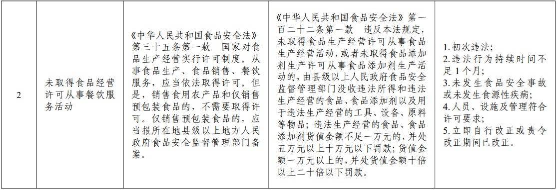 首违不罚清单提到,未取得食品经营许可从事餐饮服务活动,若同时具备以下条件,可予以免罚: