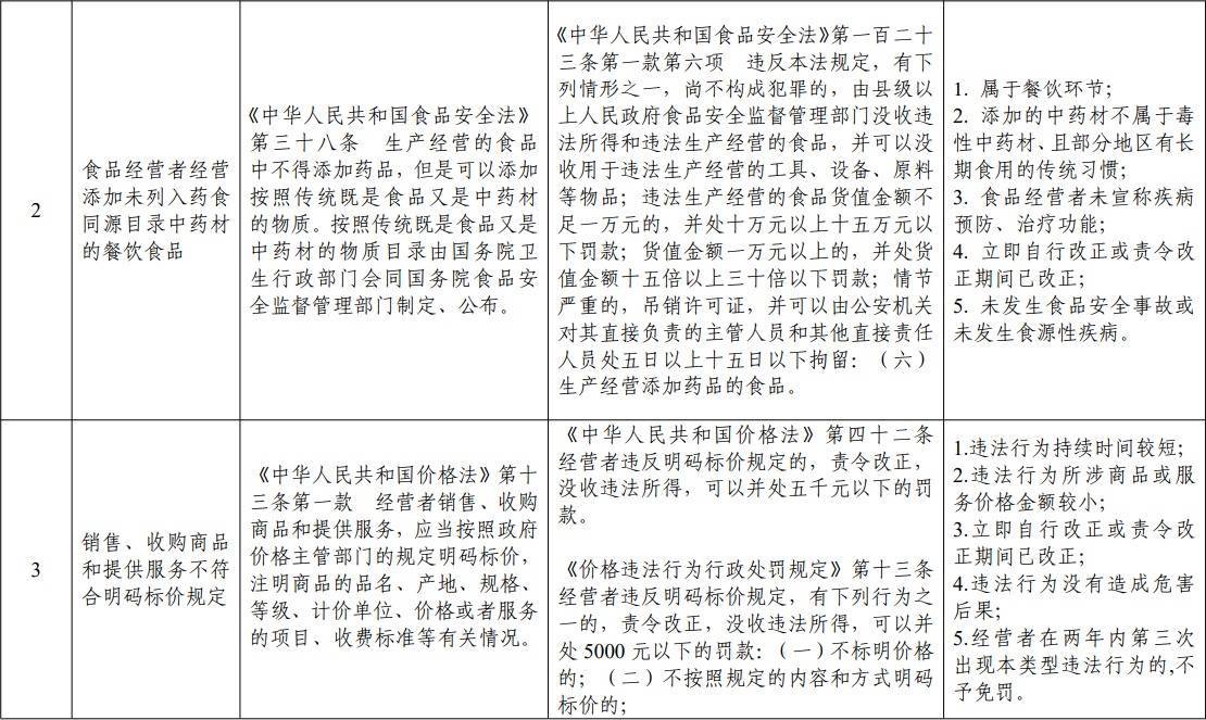 违法行为持续时间较短;涉案金额较小;立即自行改正或责令改正期间已改正,或者配合市场监管部门查处违法行为,有立功表现的;违法行为没有造成危害后果。若经营者在两年内两次出现本类型违法行为的,不予免罚。